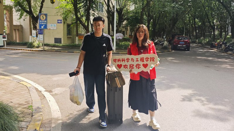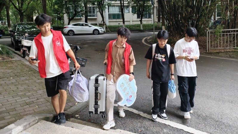 迎新当天,20号楼前暖意融融。学院研究生辅导员邓先蓉全程统筹协调,学生志愿者主动上前帮新生搬运行李,全程引导办理入住登记、领取寝室钥匙,并耐心介绍校园环境。学院报到现场设置信息核对、材料收取、院服领取等功能区,志愿者分工协作核验材料,以高效细致的“一站式”服务,为新生顺畅开启校园生活“第一扇门”。