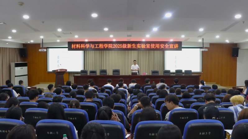 10月10日下午,材料科学与工程学院在鉴湖学术报告厅成功举办2025级本科新生实验室使用安全宣讲会。本次宣讲会由学院老师孙交通担任主讲,全体2025级本科新生参加。