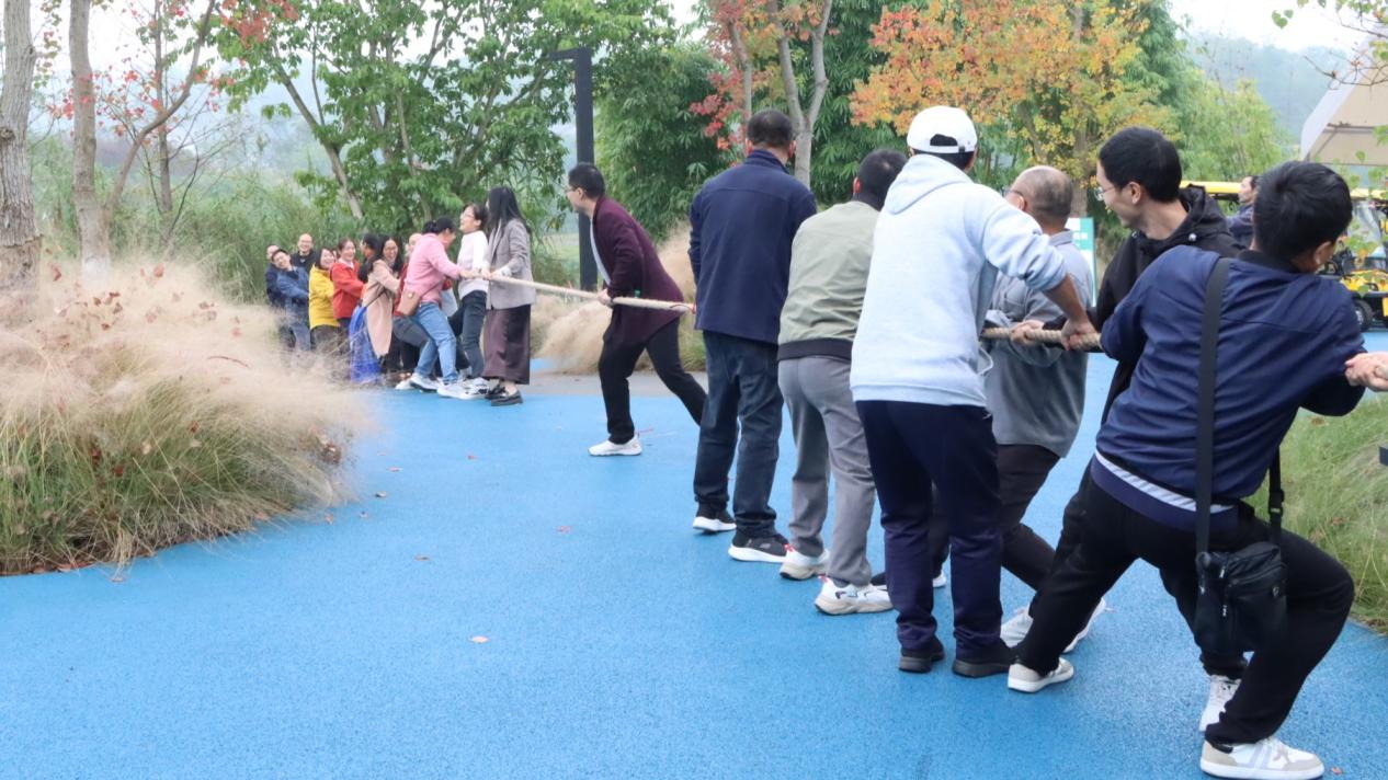 活动伊始,拔河比赛在慧谷湖园区热烈展开。教职工们自发组成两支队伍,积极投入、默契配合。大家认真调整站位,相互提醒技术要领,在裁判的哨声后齐心协力、全力以赴。比赛中,红绸在双方拉锯间反复移动,现场气氛紧张而热烈。比赛结束后,获胜队伍共同庆祝,惜败队伍亦相互鼓励,笑语中传递出浓厚的团队凝聚力,展现了超越胜负的协作精神。