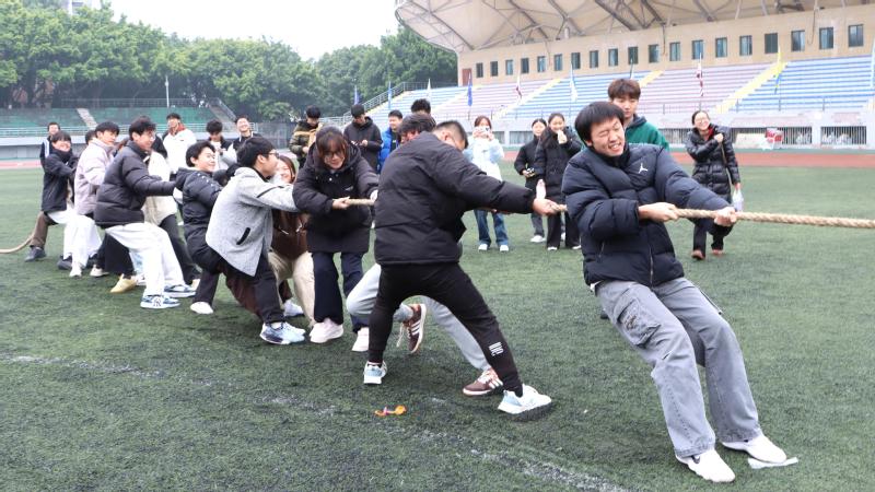 赛事环节丰富多彩,涵盖接力赛、拔河、五人六足、摸石头过河、沙包大作战、休闲大作战等项目。接力赛中选手们配合默契、全力冲刺;拔河现场呐喊震天,团队力量尽显;五人六足与摸石头过河考验协作与平衡,各队步伐统一、稳中求进;趣味项目则洋溢着欢声笑语,选手们活力四射,观众加油助威声此起彼伏,体育场全程洋溢着团结拼搏、昂扬向上的青春气息。