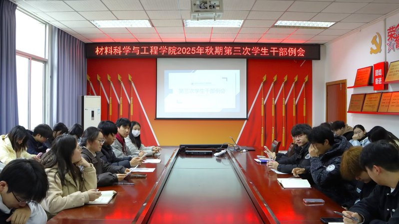 12月11日中午,材料科学与工程学院在崇智楼210召开2025年秋期第三次学生干部例会。会议由主席团吴力群主持,全体团学干部参加。