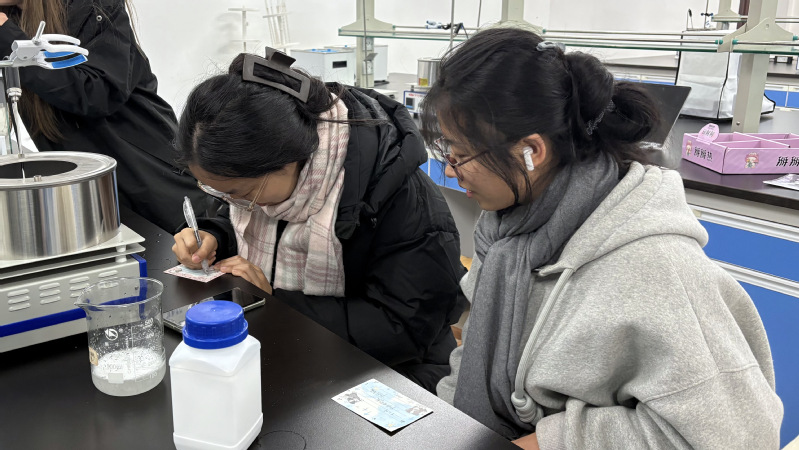 12月18日晚,“掰掰热”制作活动率先开展。本次活动紧扣材料学科相变储能、结晶固化核心知识点,以过饱和醋酸钠溶液结晶放热原理为设计核心,既精准对接冬日暖手的生活需求,又巧妙融入专业知识。活动现场,同学们在负责人的细致指导下有序调配溶液,专注投入每一步实验操作。从精准调整溶剂比例,到近距离观察结晶现象,大家亲眼见证了透明溶液经触发后迅速结晶并释放热量的奇妙过程。亲手制作的暖手袋温度可达50℃左右,持续放热时长约20分钟,兼具实用性与科学性,让同学们切实体会到“知识转化为成果”的乐趣。