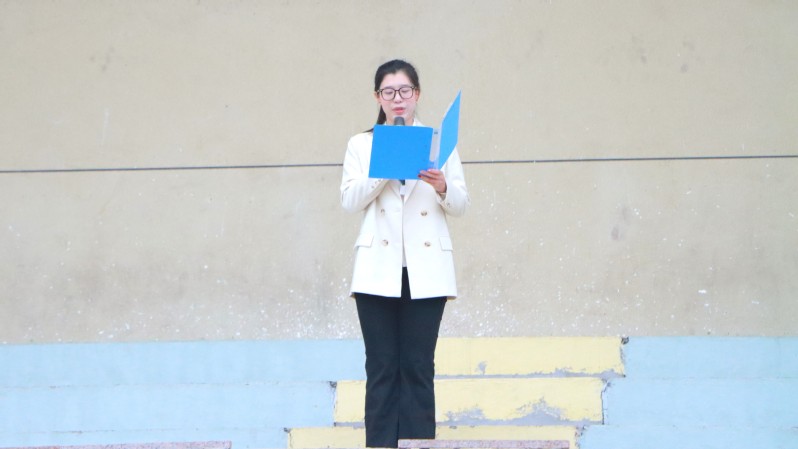 教师教育学院2023级小学教育(全科教师)专业1班的兰梦雨作为学生代表在国旗下发言,分享了自己备赛“挑战杯”的经历与收获。在备赛过程中,团队成员分工协作、反复打磨,在师长的悉心指导下攻坚克难。这段宝贵的经历不仅锤炼了大家的综合能力,也让她深刻地体会到了团结的力量。她鼓励同学们在新学期脚踏实地、踏实做事,在平凡中成就属于自己的精彩。