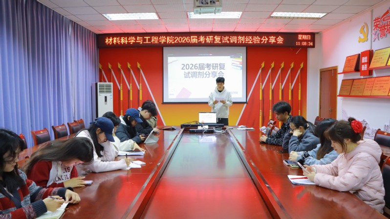 3月22日上午,材料科学与工程学院在崇智楼210会议室举办2026届考研复试调剂经验分享会。活动特邀唐桂香、尹晗菲、夏子铭、方德森、蔺馨宇五位2025届成功考研上岸的学生进行线上分享,2026届考研学子积极参与。