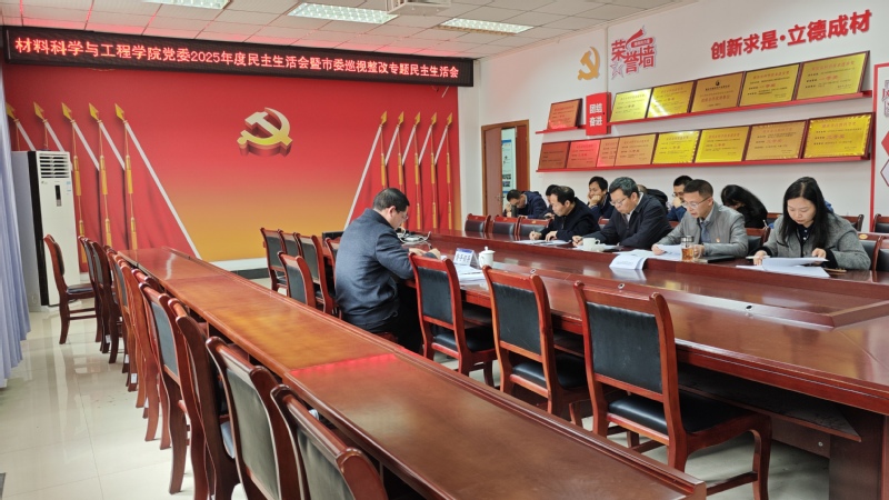 2026年3月30日,材料科学与工程学院党委在崇智楼210会议室召开2025年度民主生活会暨市委巡视整改专题民主生活会。学校督导领导、教务处处长熊正贤到会指导并作点评讲话。学院全体领导班子成员出席会议,科级干部、党支部书记和教师代表列席会议。会议由学院党委书记向从武主持。